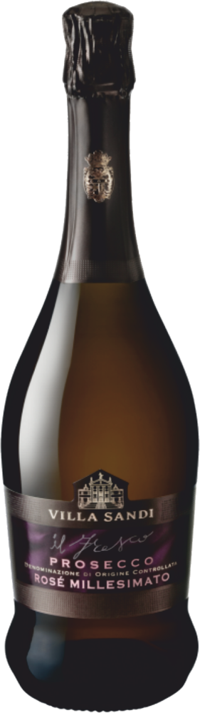 Die grandiose Erfolgsgeschichte des Prosecco wird mit dem Prosecco Rosé DOC als Millesimato Brut fortgesetzt. Der neue Verschnitt-Partner der autochthonen Glera Traube ist die Pinot Nero Traube, die per Maischegärung im Herbst vergoren wird, um die Cuvée mit zarten Tanninen und animierendem Fruchtaroma nach Waldbeeren und mit granatroter Farbe zu bereichern. Die junge Cuvée aus circa 10 bis 15 % Pinot Nero und 85 bis 90 % Glera wird mit selektionierten Hefen bei konstanter Temperatur von 15/16 °C langsam im Drucktank vergoren und reift am Ende mindestens 60 Tage auf der Hefe. Mit dem Prosecco Rosé DOC Präsentiert Villa Sandi ein neues Mitglied der berühmten und zahlreich prämierten »Il Fresco« Familie.
