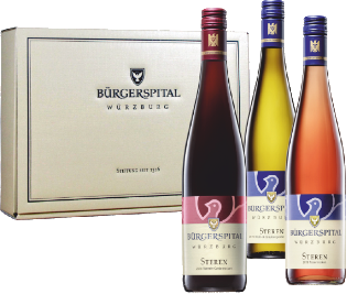 Präsent ”GUTSWEIN" 3er Geschenkkarton trockene Frankenweine vom VDP-Weingut Bürgerspital in Würzburg